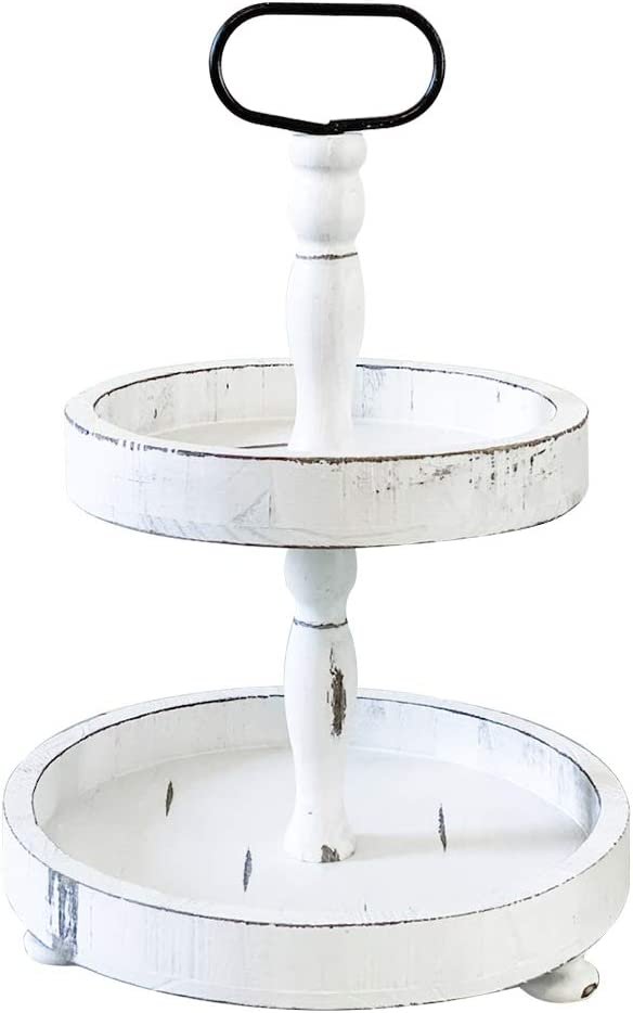 For a rustic touch, consider hanging a metal sign of a rooster or pig on the wall. The sign would look great next to some flowers or greenery. If you have a farmhouse-style kitchen, consider purchasing a set of three metal signs, one of which has a rooster, one of which has a sound written across the sign. For even more farmhouse style kitchen decor, use vintage thrift store finds to fill the shelves.